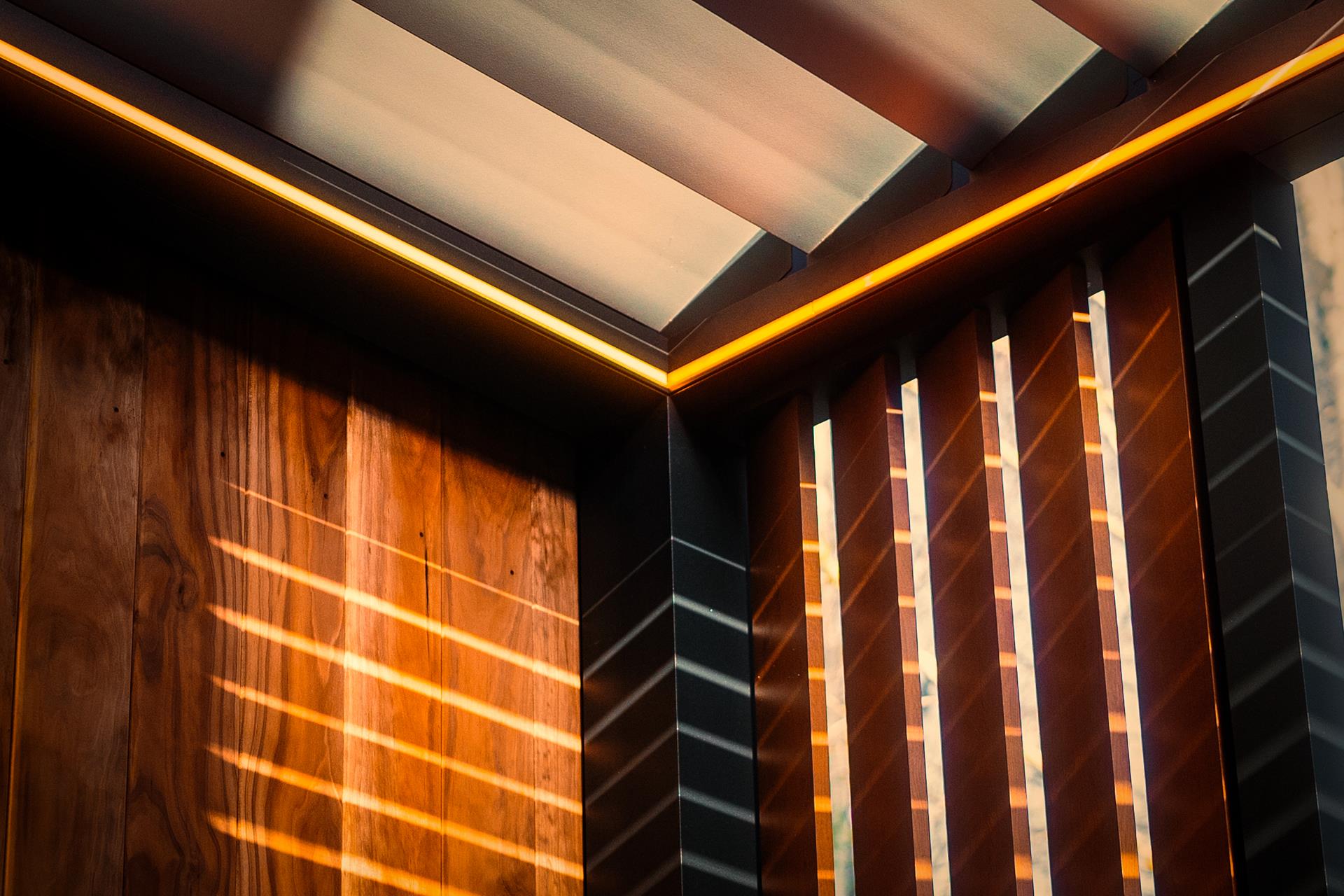 Zintegrowane oświetlenie LED, rolety i przeszklenia.
